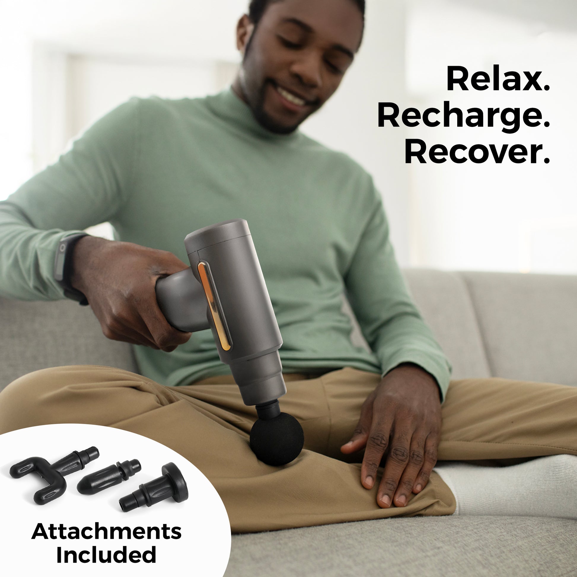- RELAXING MASSAGE GUN WITH 4 ATTACHMENTS: Help Dad unwind after long days with a quiet handheld massager that targets sore muscles and tension. Perfect for feel better gifts for men, care packages for dad, or any Fathers Day gift box that delivers comfort and relaxation.